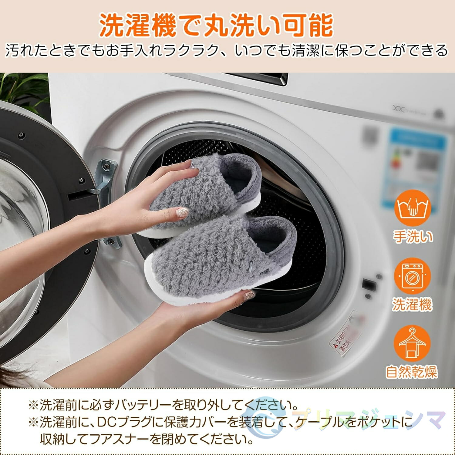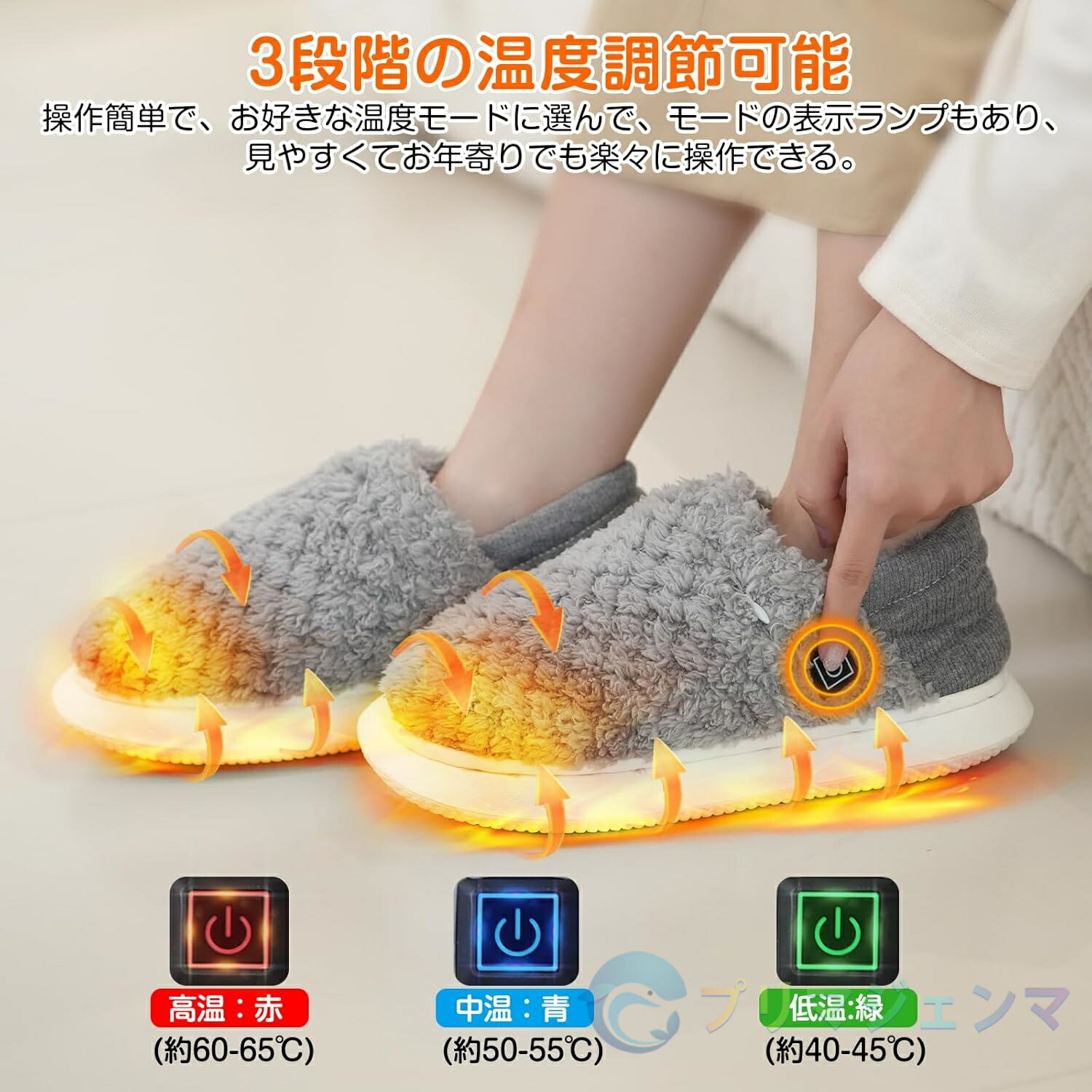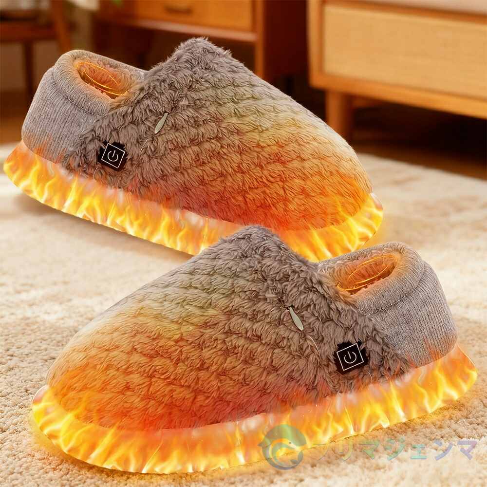 電気スリッパ コードレス 10秒速暖 グレー ブラウン 不要 10000mahモバイルバッテリー*2
