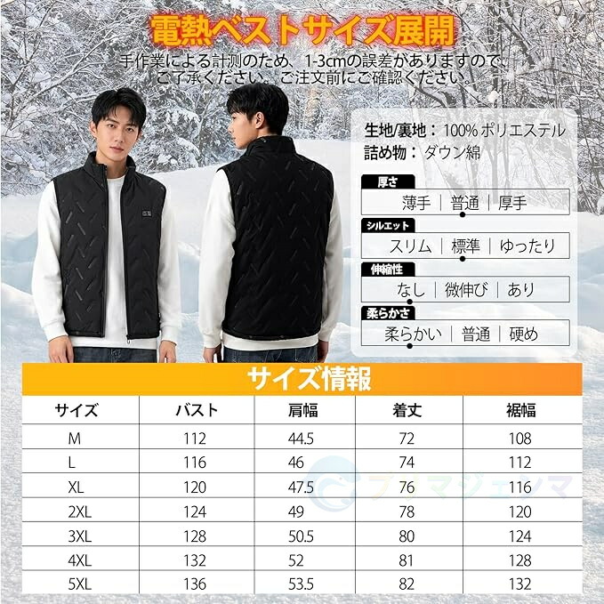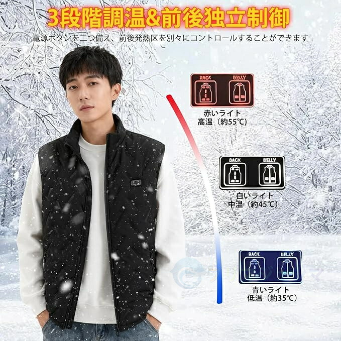 電熱ベスト 大容量バッテリー付き 9箇 トップス ベスト ジレ 豊富 服のみ 服+20000mah*1 服+20000mah*2