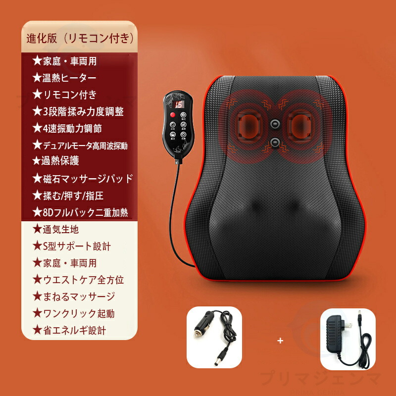 進化版:マッサージ枕本体(リモコン付き)*1、シガーソケット*1、日本語取扱説明書*1