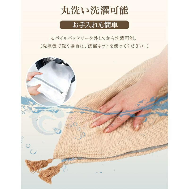 電気毛布 USB ニット ワッフル生地 大きいサイズ 掛け敷き 電気 ひざ掛け バッテリー付き 着る電気毛布 8発熱 ヒーター 洗える 150*85cm 3段階 掛け毛布 発熱 肩掛け タッセル仕様
