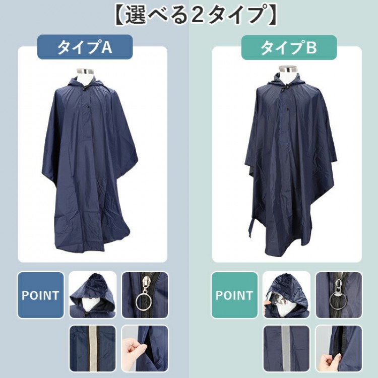 ポンチョ レインコート 車いす 通販 ネイビー×A ブルー×A ネイビー×B ブラック×B