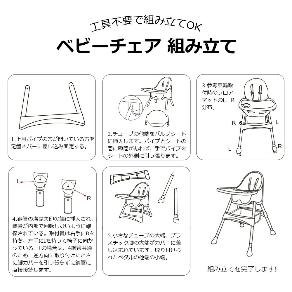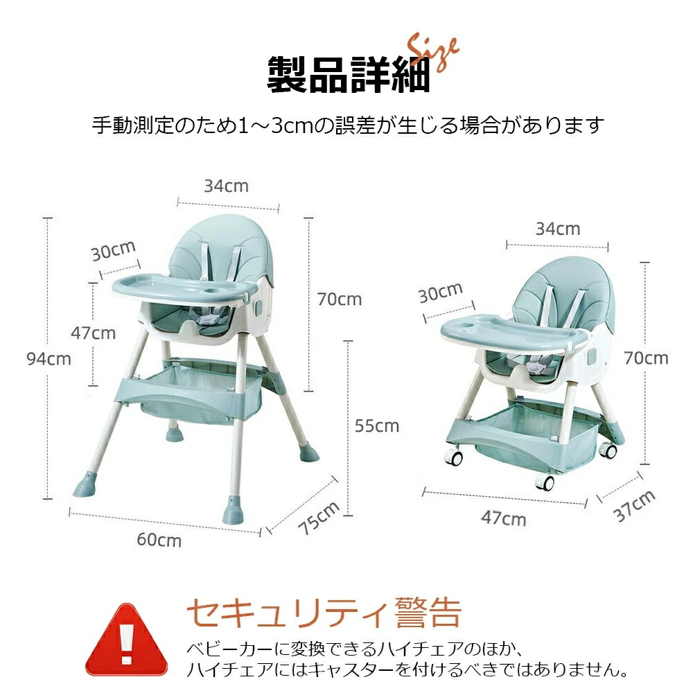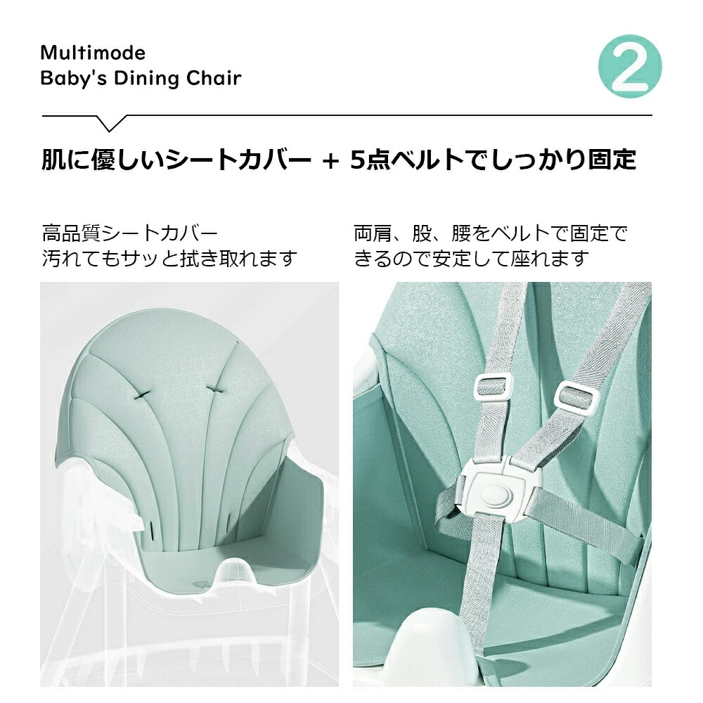 2.工具不要でハイチェア 、ローチェアの2wayで使える。2タイプ・多機能ハイローチェア:足の調節でハイチェアにもローチェアにも変身できる一台二役の機能的ダイニングチェア。また、ハイチェアとローチェアの両モードにそれぞれキャスターを取り付けることができ、移動便利です!5カ月頃から4歳頃まで長くお使いいただけます。