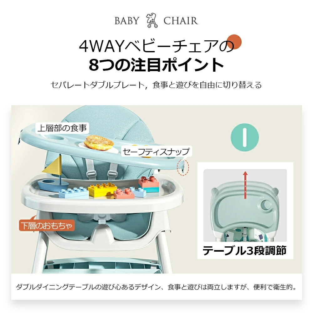 ベビーハイチェア ベビーチェア ローチェア 折りたたみ ベビーチェアー キッズチェアー テーブル付 食事用 イス 椅子 テーブルチェア 食事 高さ調整 テーブル シック ダイニング ダイニン 落下防止