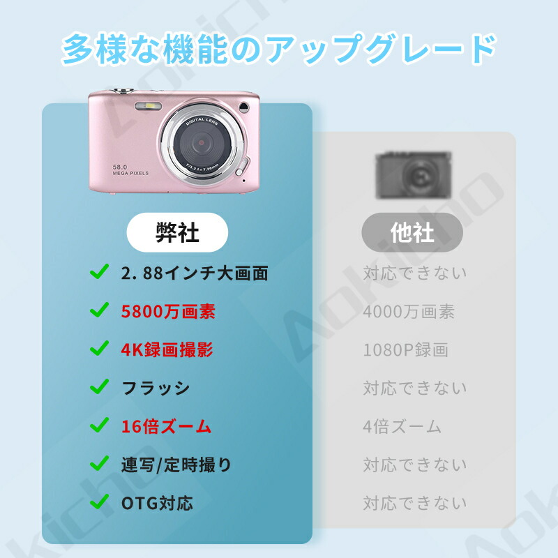 2025最新型 デジタルカメラ デジカ ブラック ピンク ホワイト グリーン 32GBカード 64GBカード 128GBカード 必要ありません
