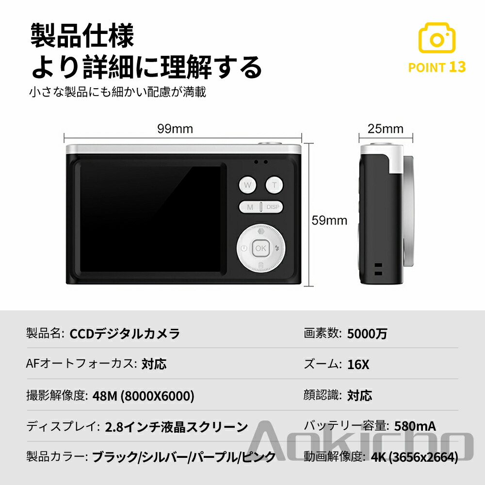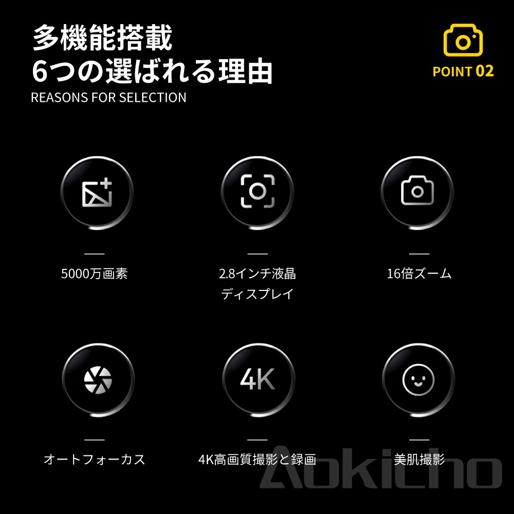 デジタルカメラ 4K 5000万画素 ブラック ホワイト ピンク パープル 必要ありません SDカード16GB+カードリーダ*1 SDカード32GB+カードリーダ*1 SDカード64GB+カードリーダ*1 SDカード128GB+カードリーダ*1