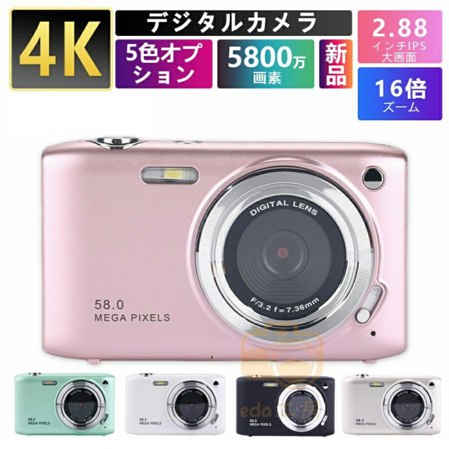 デジタルカメラ 5800万画素 手ぶれ ピンク グリーン ホワイト ブラック