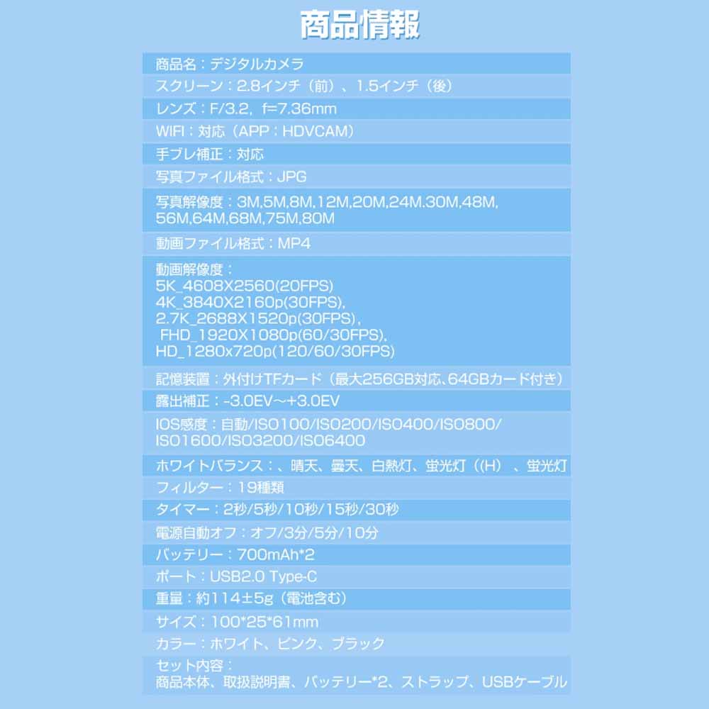 デジタルカメラ WIFI対応 8000 ホワイト ピンク ブラック
