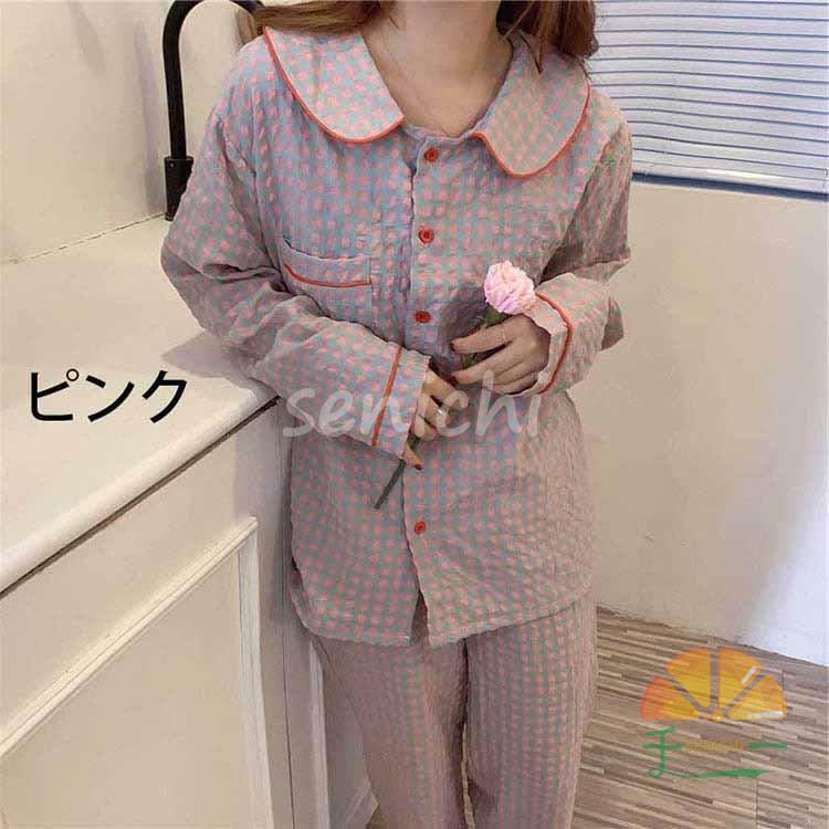 パジャマ 上下セット レディース 前開 インナー 下着 ナイトウエア 大人気! ブルー ピンク
