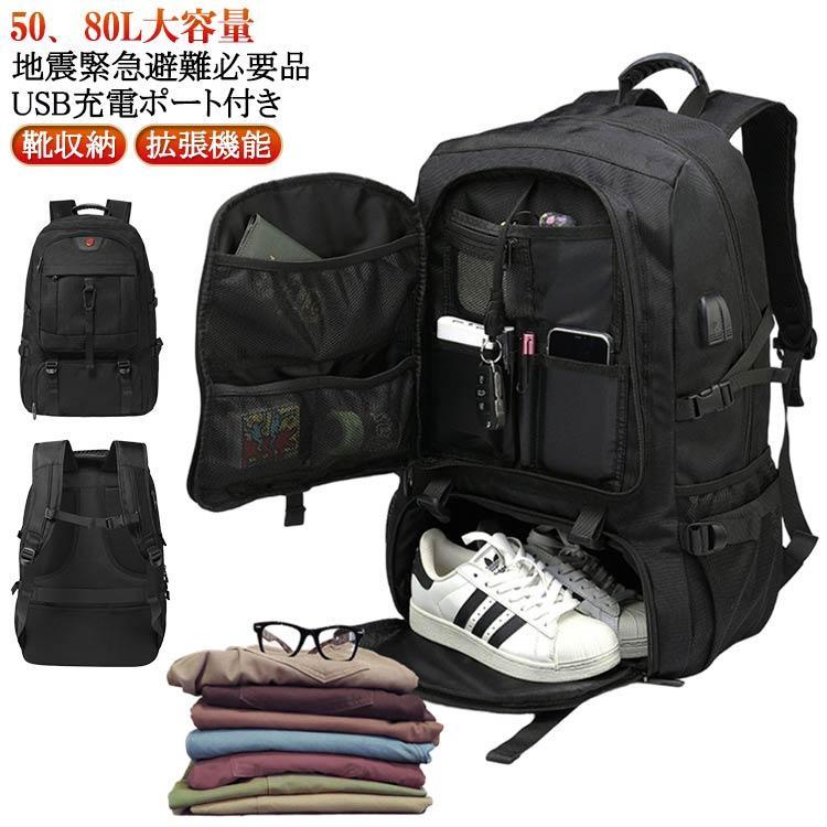 地震 災害対策 50L 80L 拡張機能 靴収納 リュック 大容量 メンズ ビジネスリュック 拡張 バックパック 軽量 ラップトップバック 通勤 防水