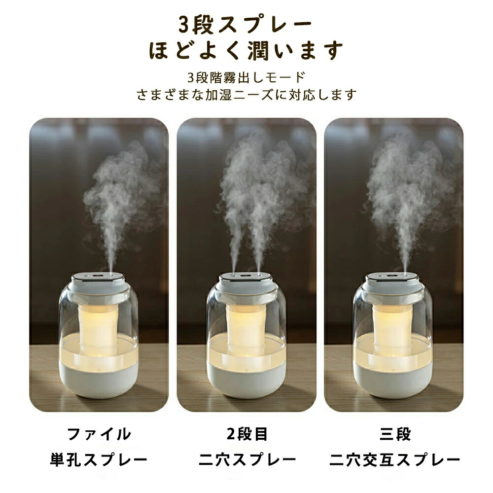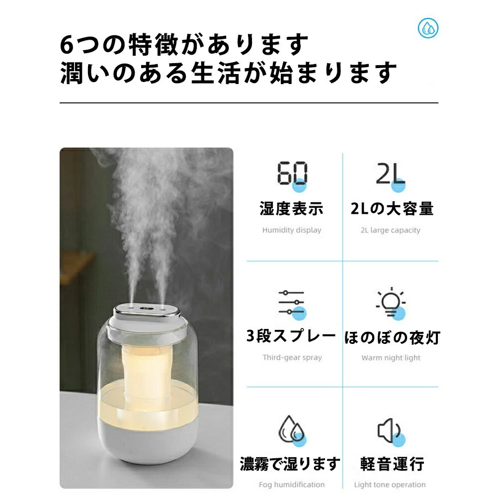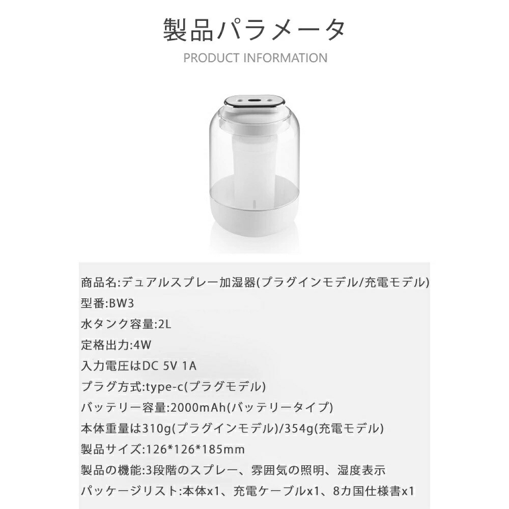 加湿器 小型 2L 静音 卓上加湿器 プラグイン・モデル 充電式