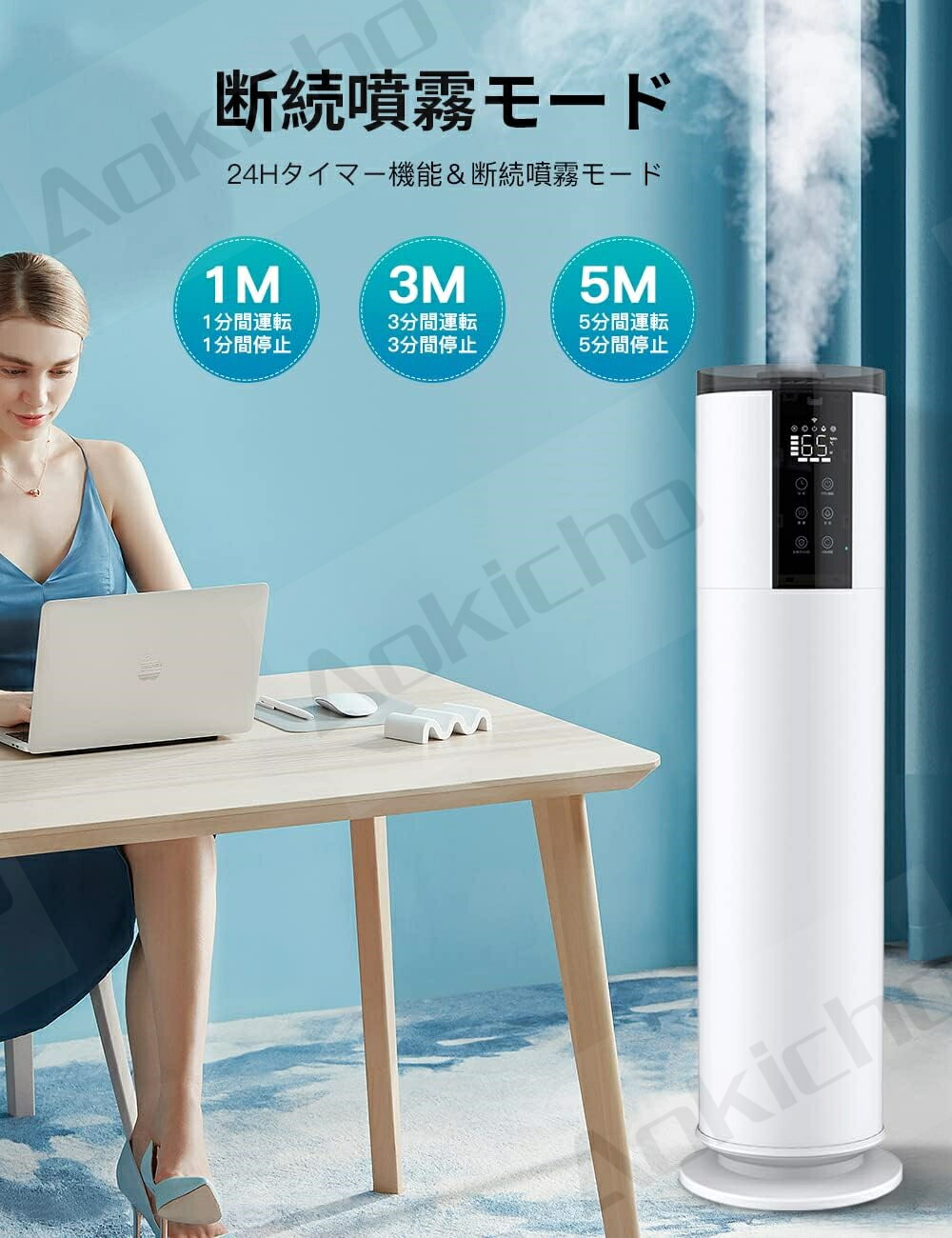 2025モデル 超音波式 加湿器 大型 大容量 タワー式 水漏れしない 水循環 加湿力350mL h 定湿機能 4段階噴霧 切タイマー リモコン付き 水位確認可能 お手入れ簡単 学 液晶パネル