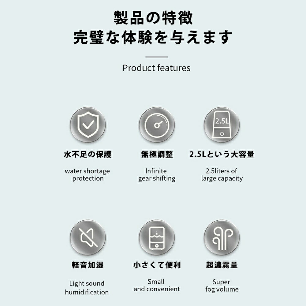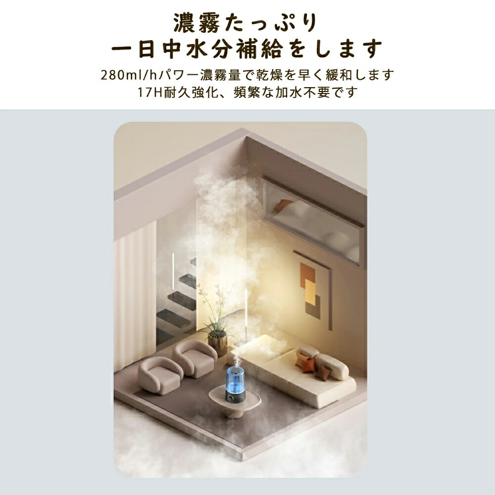 加湿器 超音波加湿器 小型 静音 卓上加湿器 お手入れ簡単 卓上 おしゃれ オフィス 大容量 超音波式 上部給水 上から給水 節電 強力加湿 保湿 乾燥 寝室 省エネ 軽量 空焚き 子供部屋