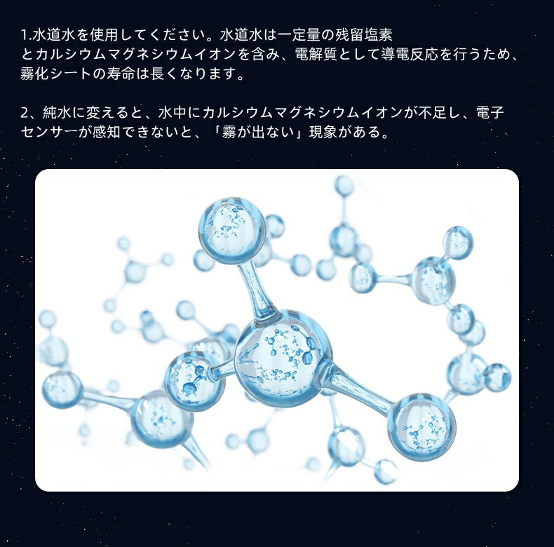 睡眠や作業の妨げにならない静音設計で寝室や書斎での使用にもおすすめです。自然蒸発しやすい超微細ミストで、周囲を濡らさず快適に使えます。 透明でオシャレなデザインで外側から水の残量がわかります。ストレスなく使うことができます。