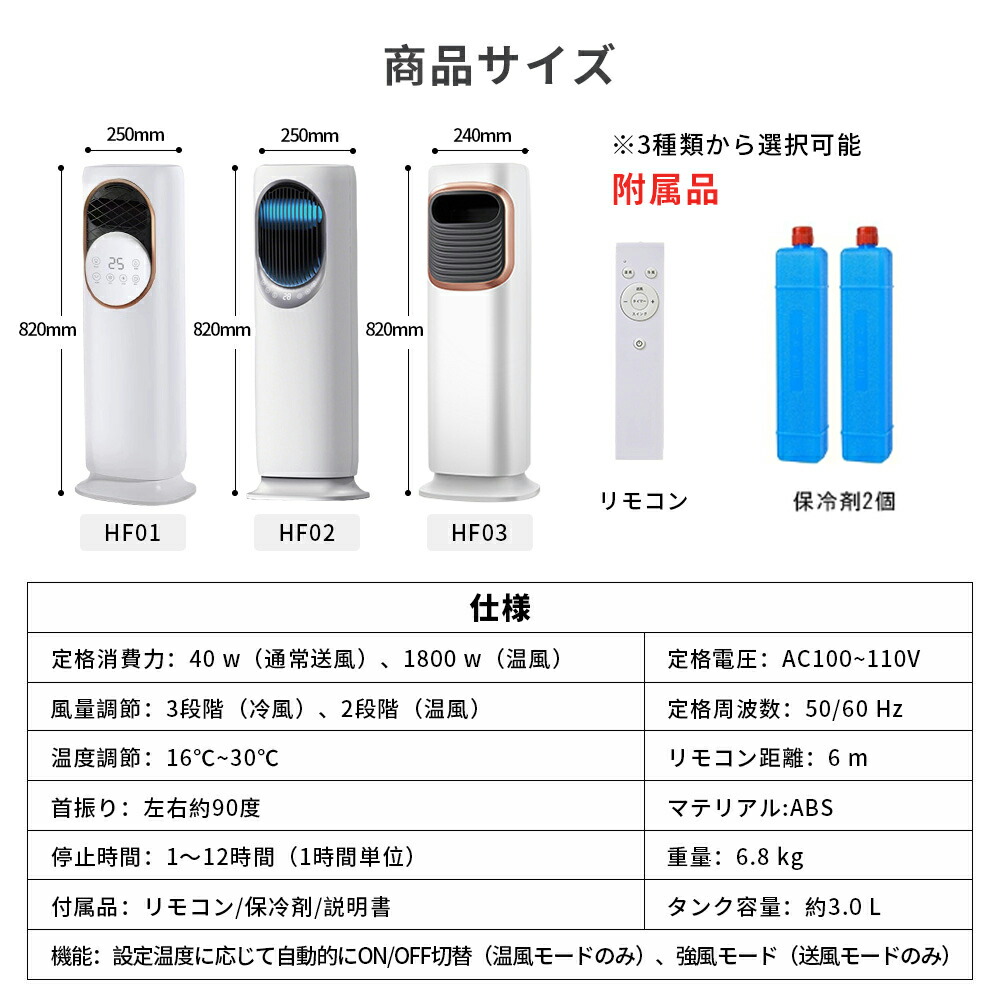 扇風機 冷風機 冷風扇 保冷剤 冷暖兼 HF01 HF02 HF03