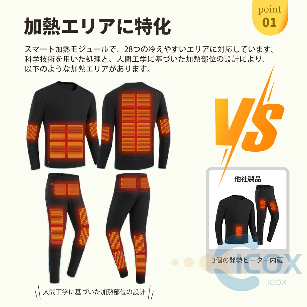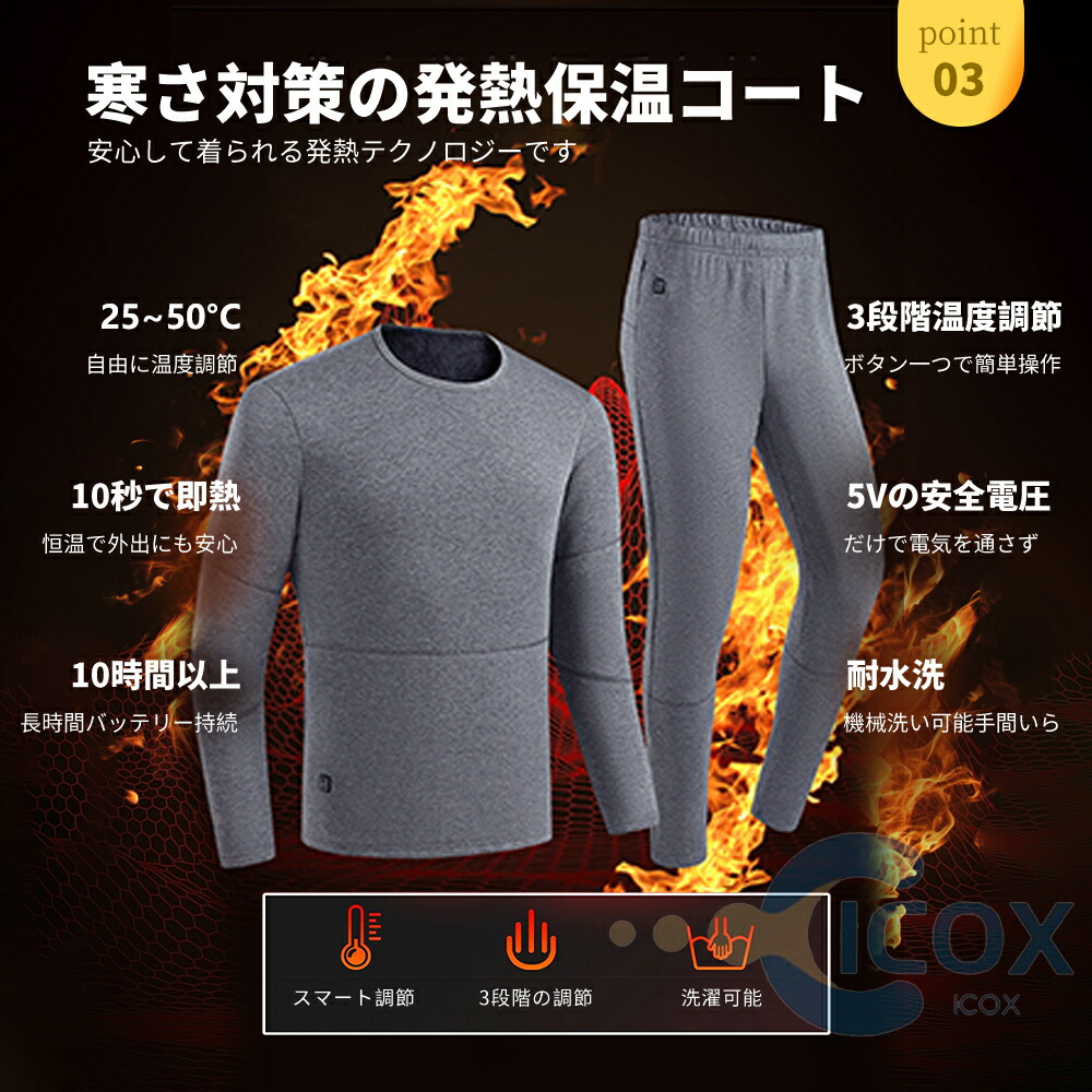 電熱インナー 電熱パンツ 電熱インナー スポーツ アウトドア 豊富 S M L XL 2XL 3XL 4XL 5XL ブラック-トップス グレー-トップス ブラック-パンツ グレー-パンツ ブラック-上下セット グレー-上下セット