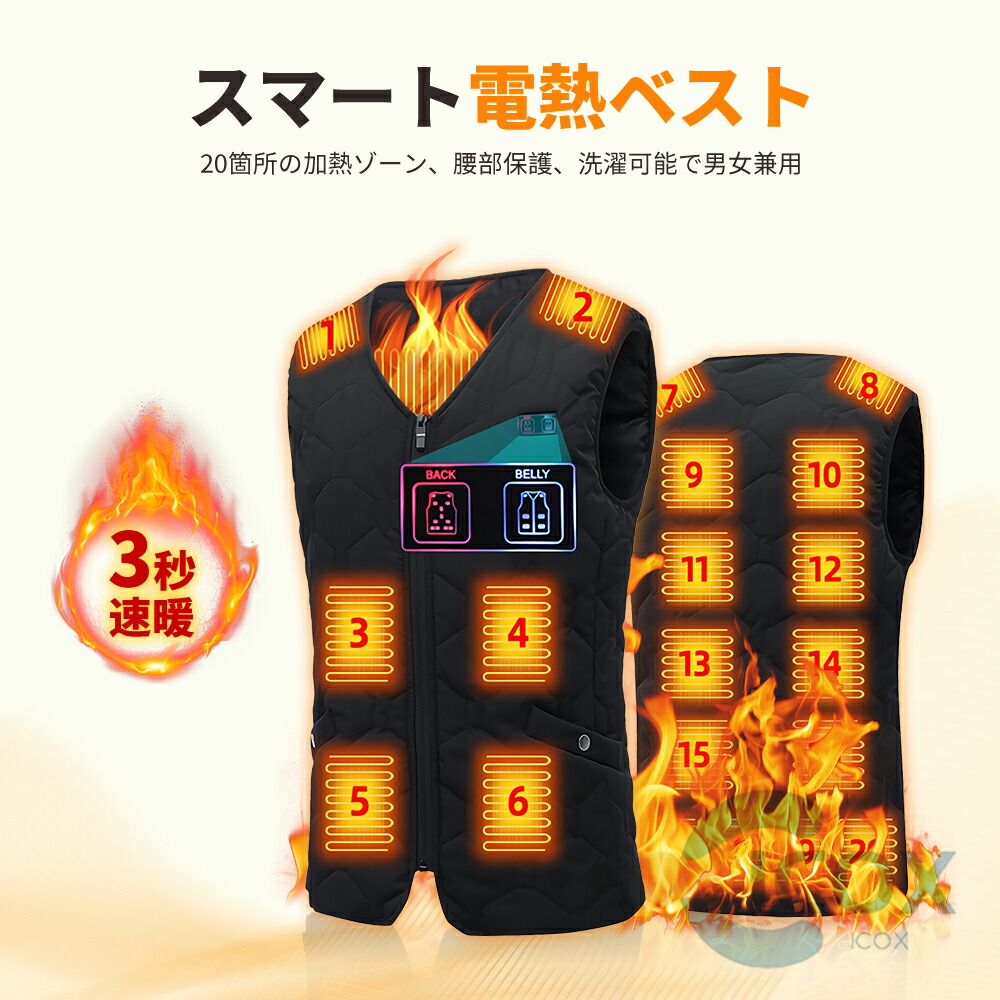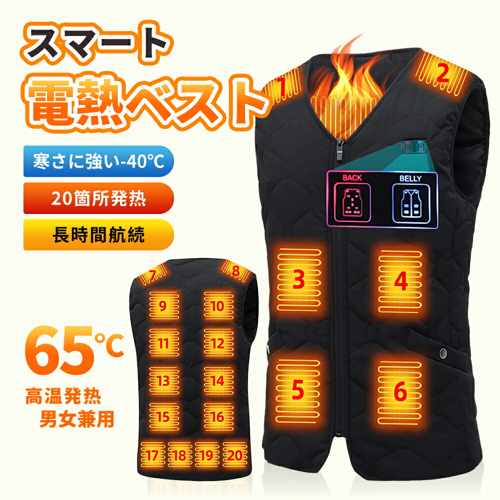 電熱ベスト 電熱ウェア 20箇所発熱 メンズファッション 豊富な品揃え M L XL 2XL 3XL 4XL 5XL 必要ありません 10000mAh 20000mAh