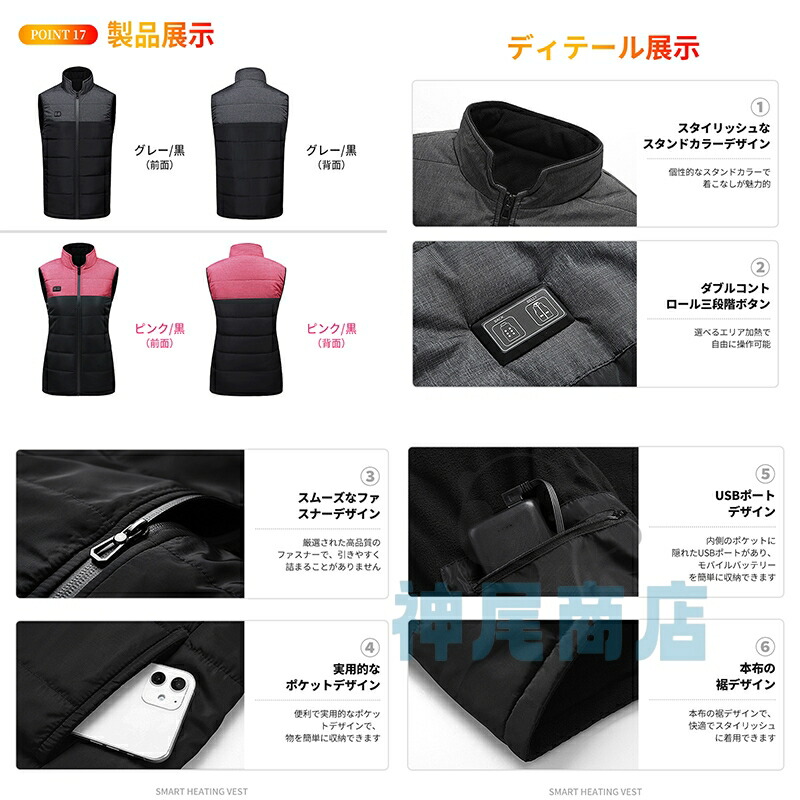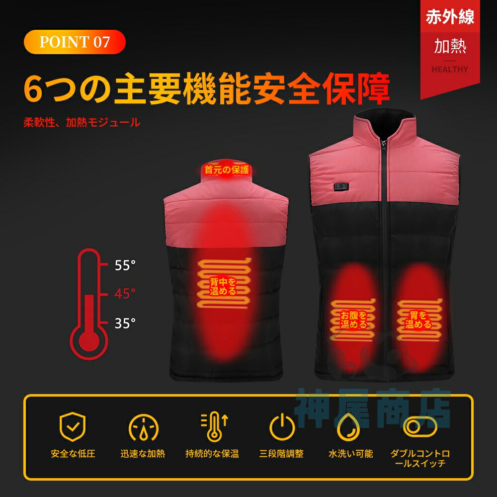 電熱ベスト 電熱ウェア 3段階調温 2 トップス ベスト ジレ 豊富な品揃え S M L XL 2XL 3XL 4XL 5XL ブラックピンク ダークグレー