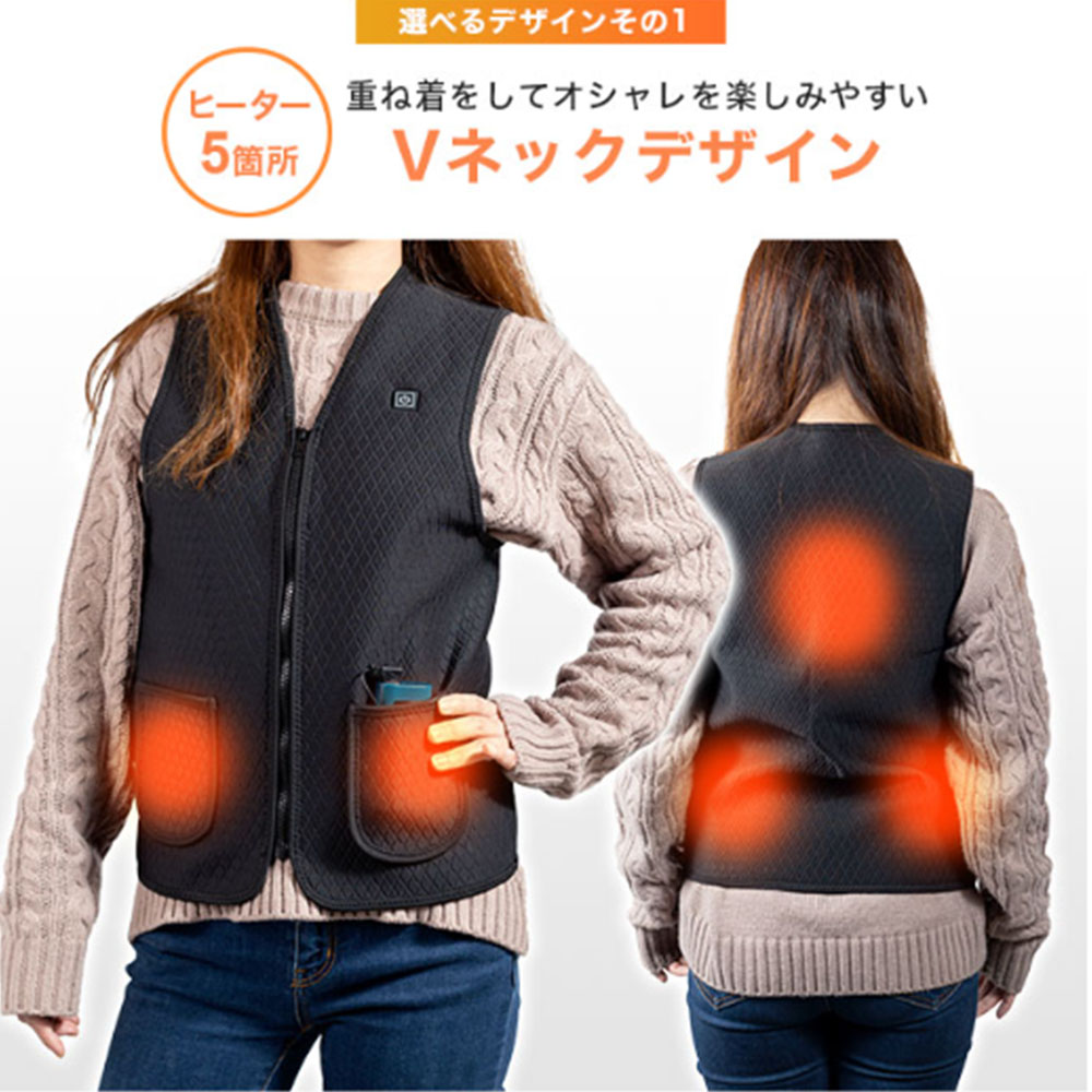 USB 電熱ヒートベスト sssレディ トップス ベスト 豊富な品揃え ●Vネックデザイン ●ハイネックデザイン S M L XL 2XL