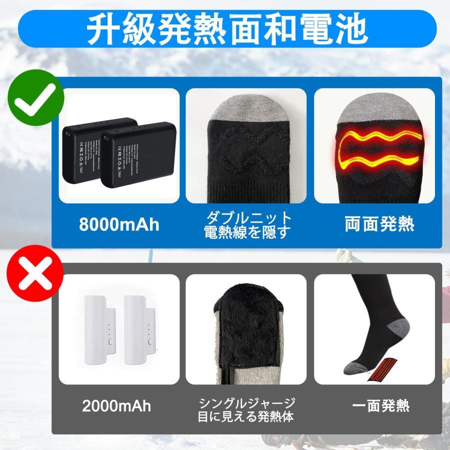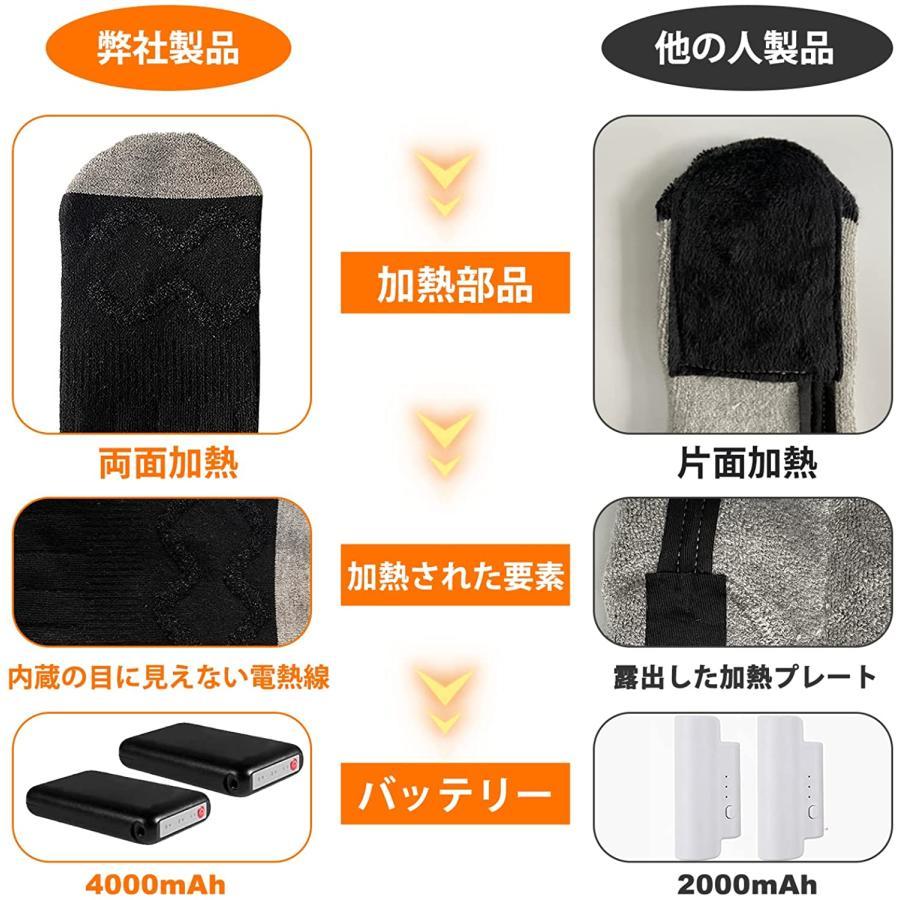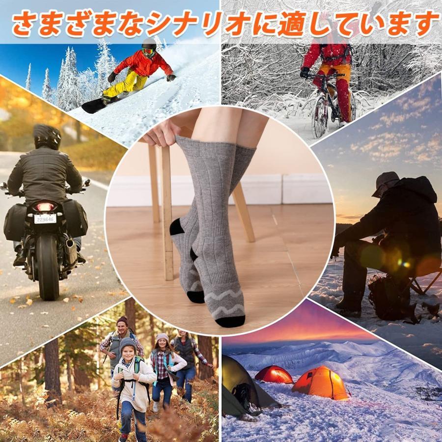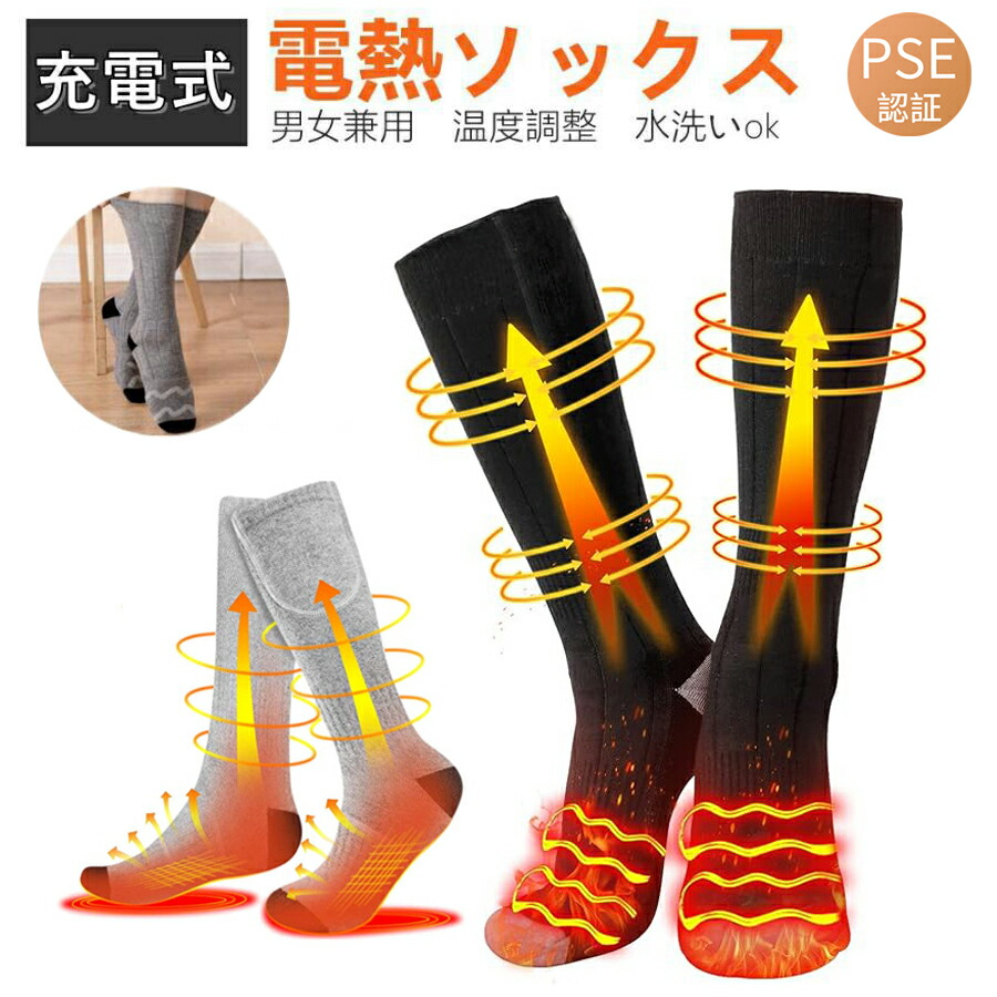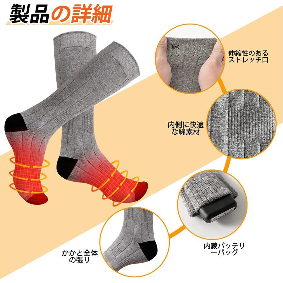 電熱ソックス 電気靴下 ヒーターソック ユニセックス 靴下 レッグウェア 人気 グレー ブラック 必要ありません 4000mAh