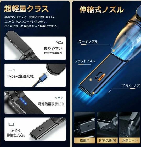 ハンドクリーナー ミニ掃除機 ハンディ オレンジ ブラック ライトブルー ライトグリーン ピンク