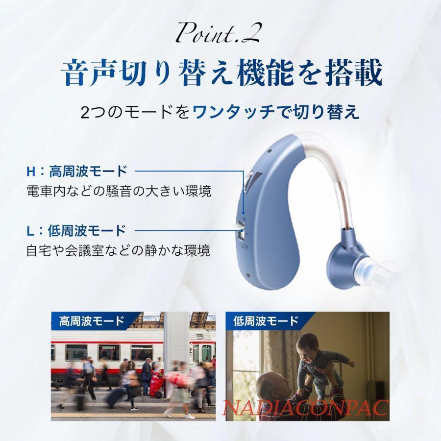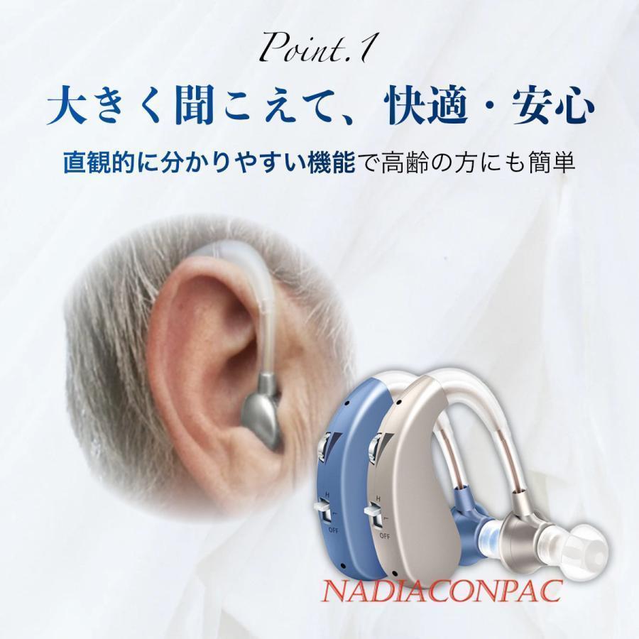 集音器 耳掛け式 高齢者 USB充電式 シャンパン ブルー