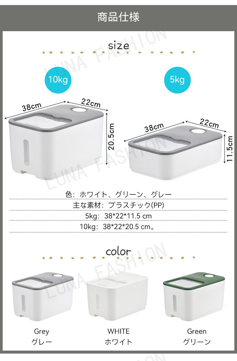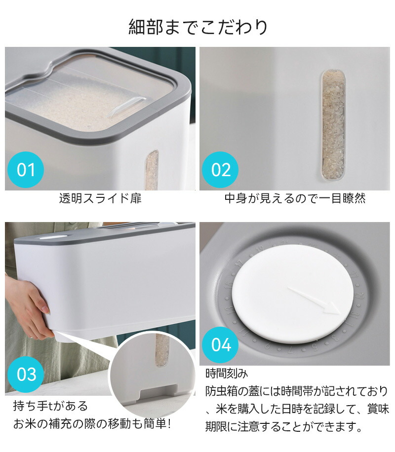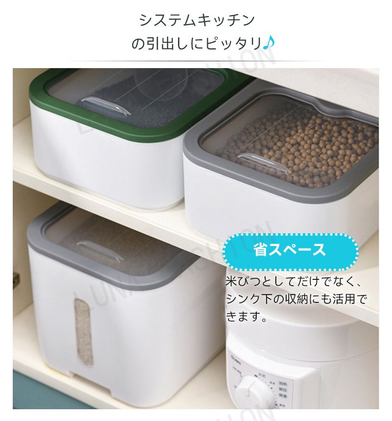 米びつ 10kg おしゃれ 5kg 密 キッチン用品 食器 調理器具 通販 5KG 10KG ホワイト グレー グリーン