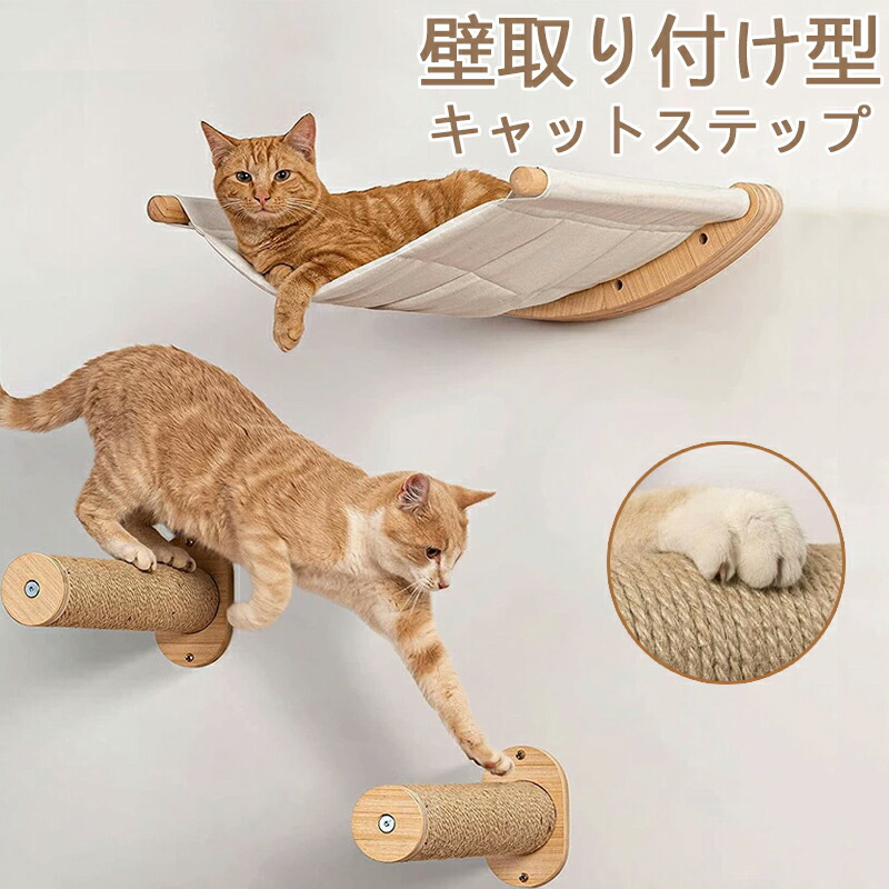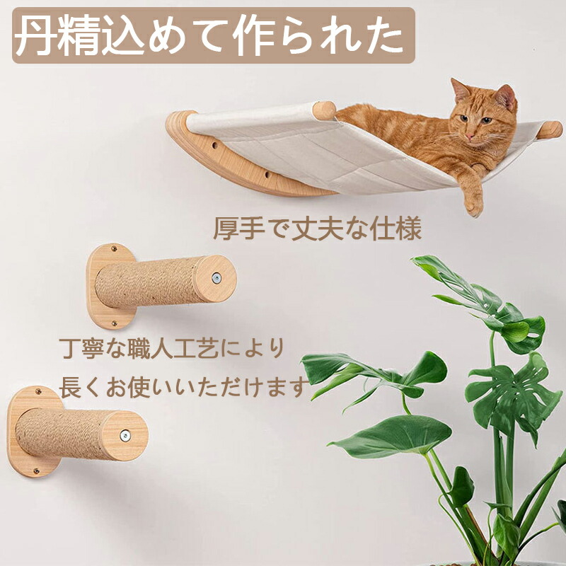 キャットステップ ハンモック 猫 階段 ペット ペットグッズ 大人気! 個別の猫ベッド 猫用登山ポスト 2 本 ステップ2個+ハンモック