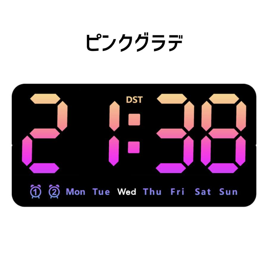 LED デジタル時計 時計 デジタル ホワイト ピンクグラデ ブルーグラデ