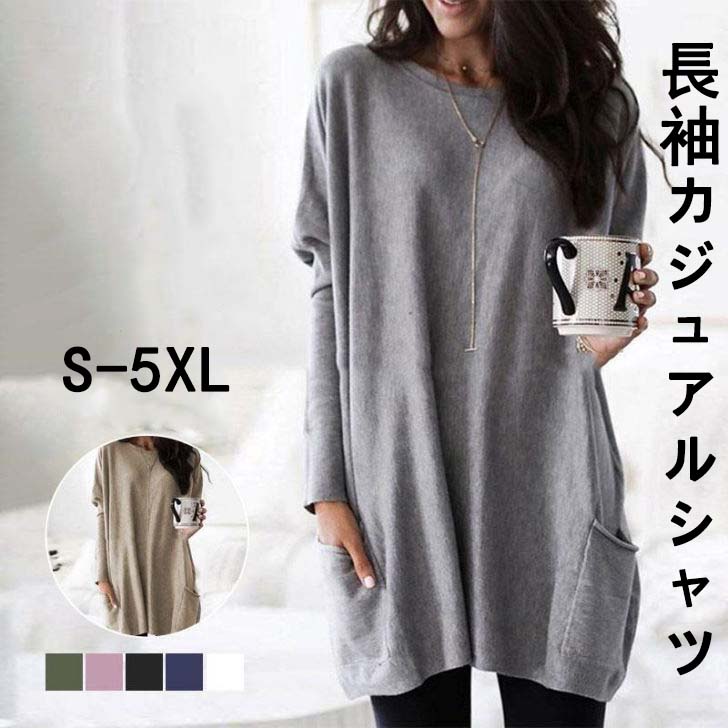着痩せ ロンT 長袖 チュニック 秋物 レディースファッション 早い者勝ち ブラック ネイビー グレー オリーブ ホワイト*ブラック ホワイト*カーキ ホワイト*グレー ホワイト*ブルー S M L XL 2XL 3XL 4XL 5XL
