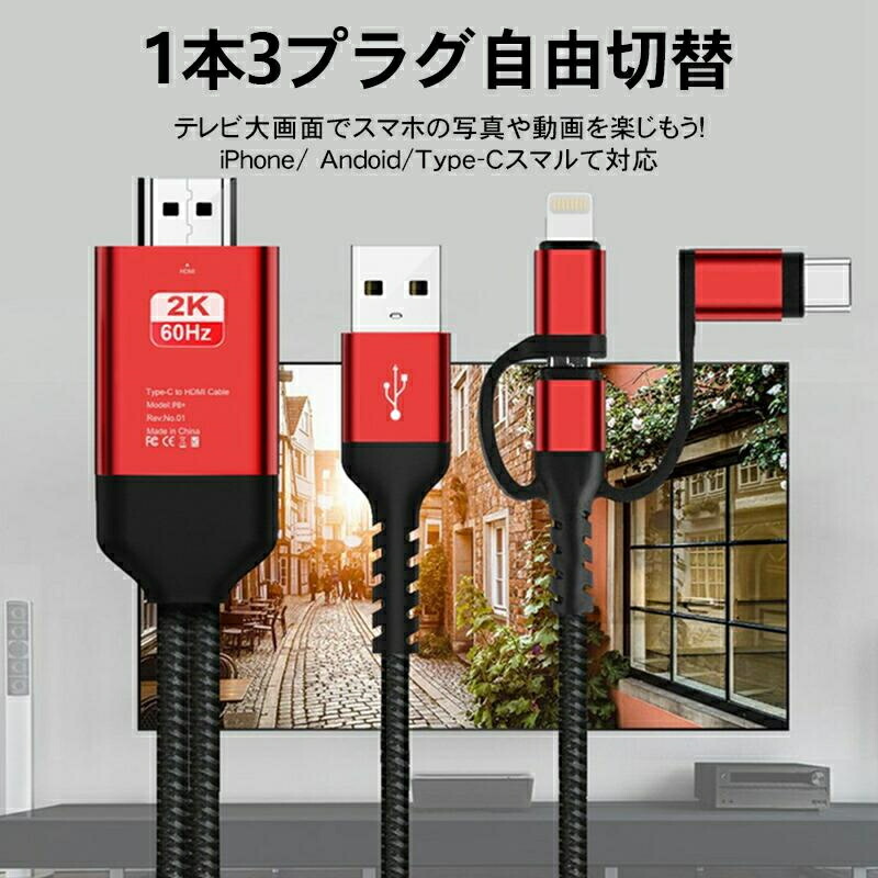 iphoneミラーリング iPhone スマートフォン タブレット用ケーブル 変換アダプター 早い者勝ち ブラック レッド