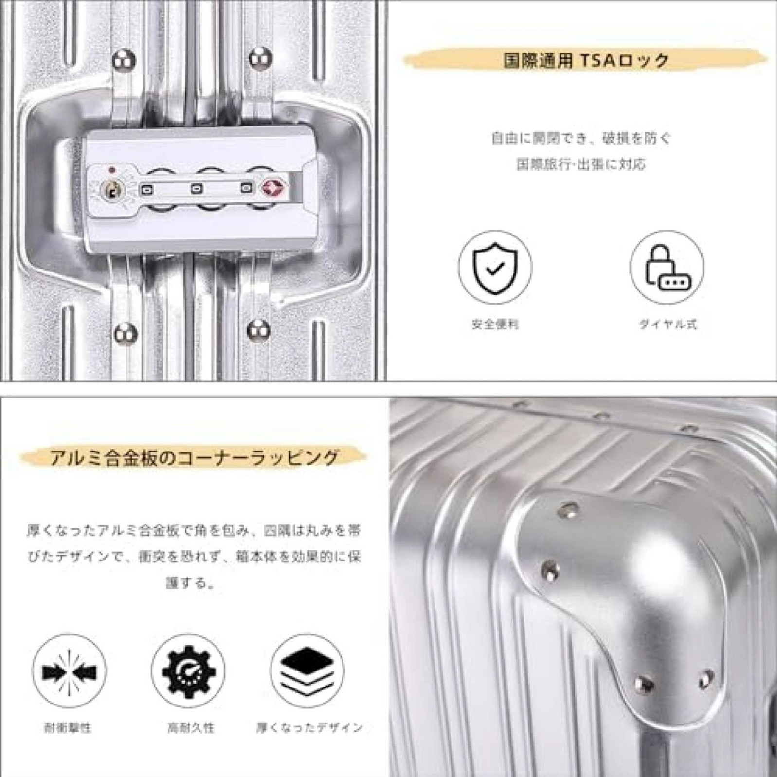 スーツケース アルミ マグネシウム合金 バッグ 小物 ブランド雑貨 通販 シルバー ブラック きんいろ ピンク レッド ブルー S M