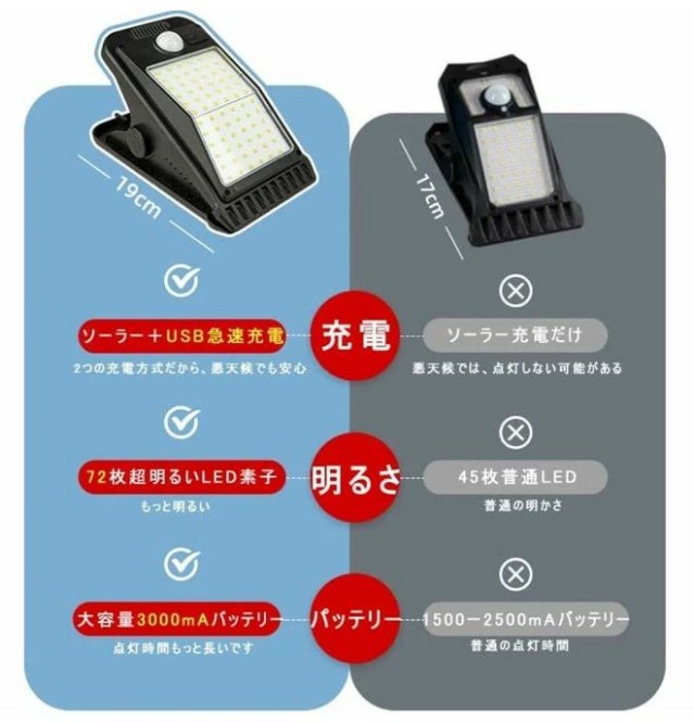 ソーラーライト 屋外 クリップ式 セン white yellow