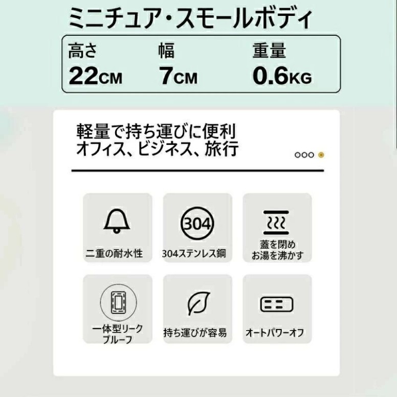 車載電気ケトル 持ち運び 電気ケトル ホワイト グリーン 12V 24V 110V