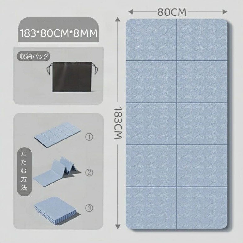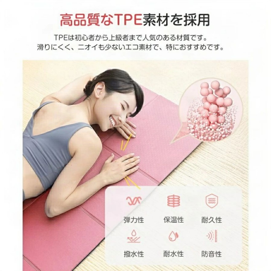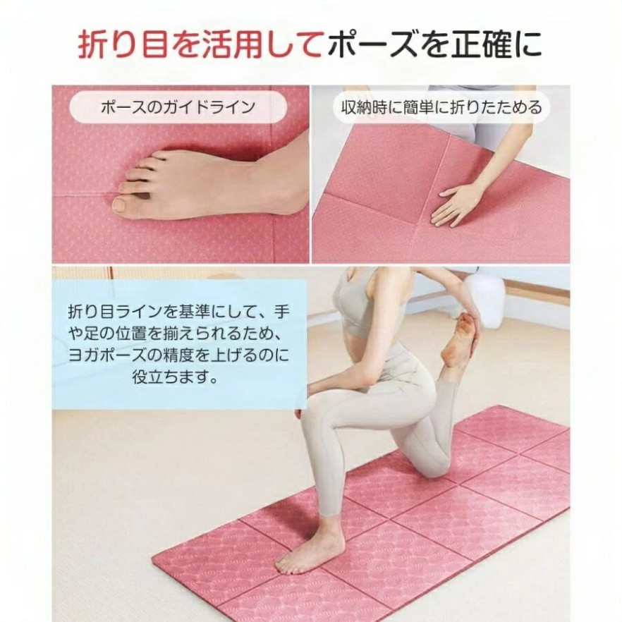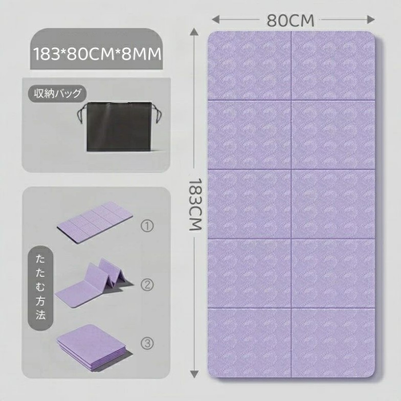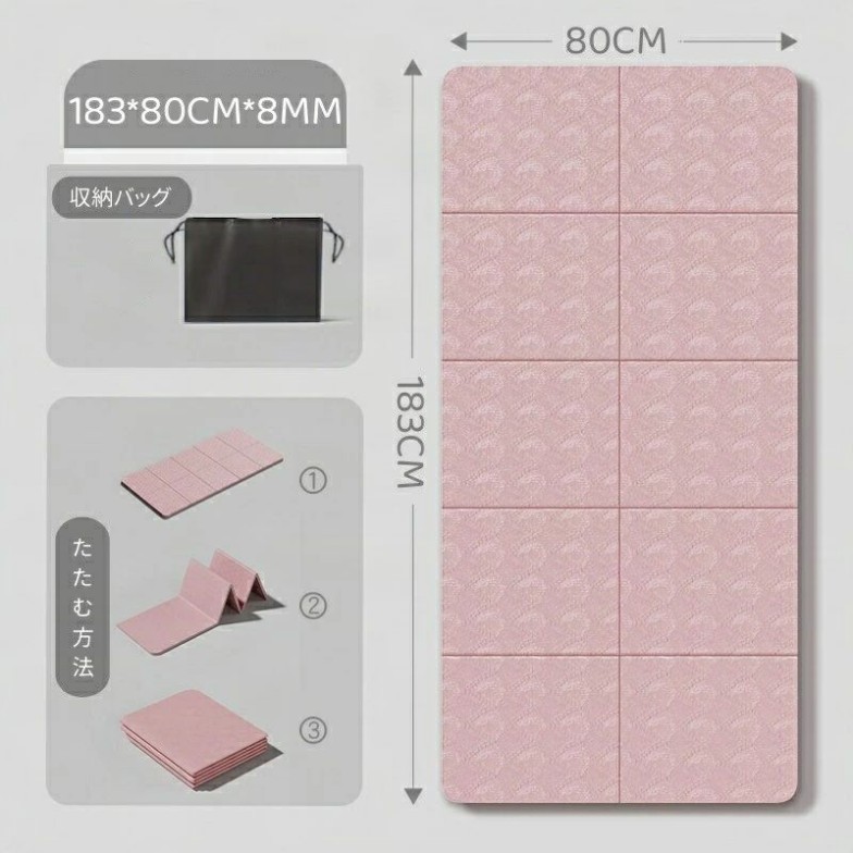 ヨガマット 折りたたみ 8mm TPE スポーツ アウトドア 超目玉商品 ピンク パープル ブルー グレー