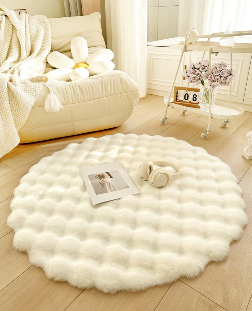 ラグ おしゃれ 円形 ラグマット ラビ ホワイト ベージュ カーキ ピンク グリーン グレー 直径90cm 直径100cm 直径110cm 直径120cm 直径130cm 直径140cm 直径150cm 直径160cm
