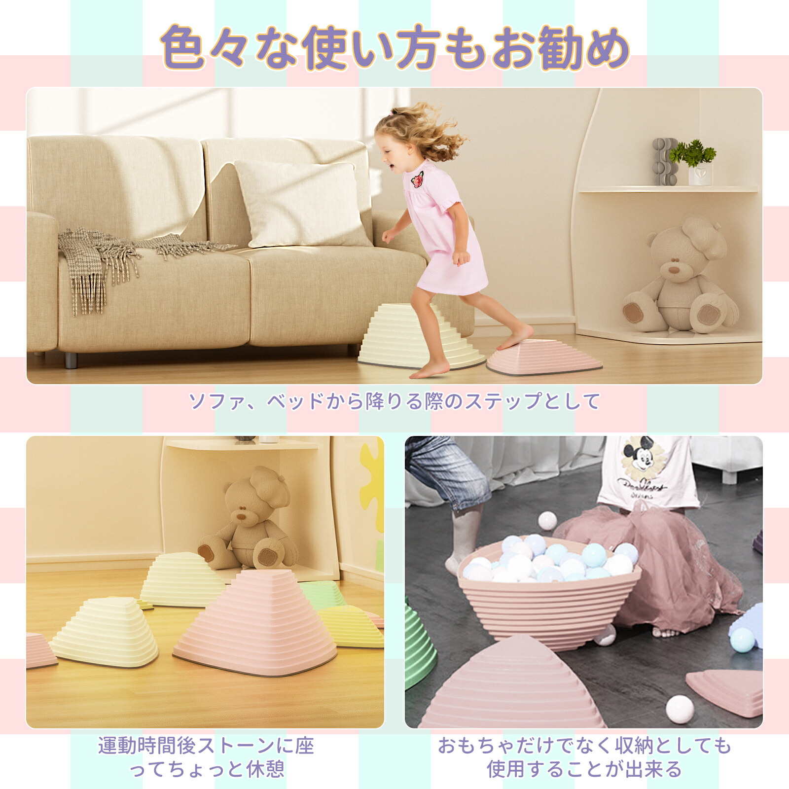 バランスストーン 9個 11個セット ゲーム バランスゲーム 早い者勝ち 三角形 ハート形 石型 マカロンカラー マルチカラー