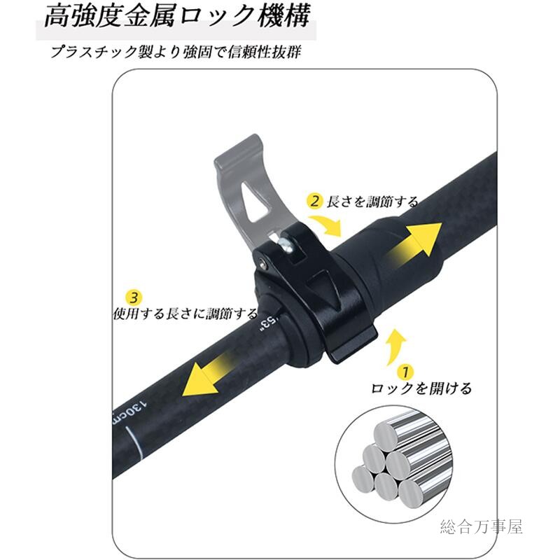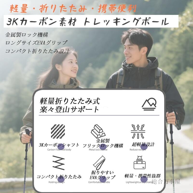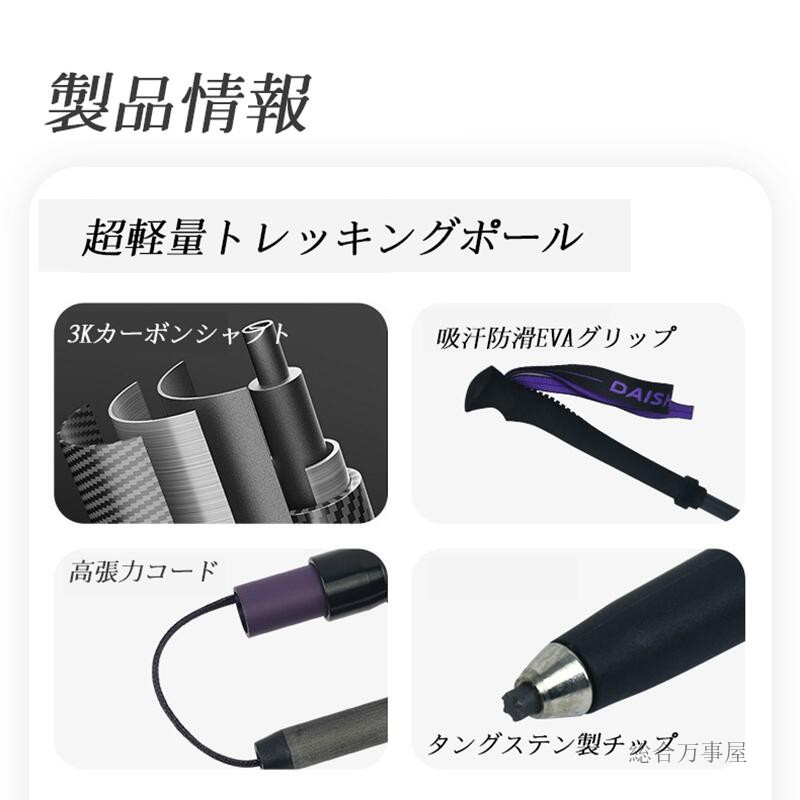 トレッキングポール 3Kカーボン 超軽 スポーツ アウトドア 人気 パープル グリーン ブラック イエロー 85-100cm(約140g) 100-120cm(約150g) 115-135cm(約160g)