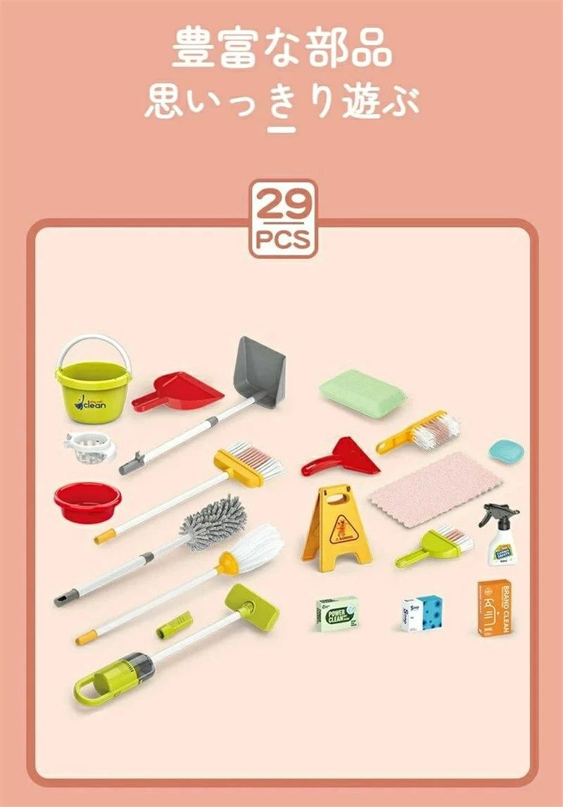 お掃除セット 子供用シミュレーション清掃工具カート おままごと 29点セット 掃除機 掃除機モップセット 幼児用キッズクリーニングセット 清潔衛生玩具 早期教育 女の子 誕生日 クリスマス プ 男の子