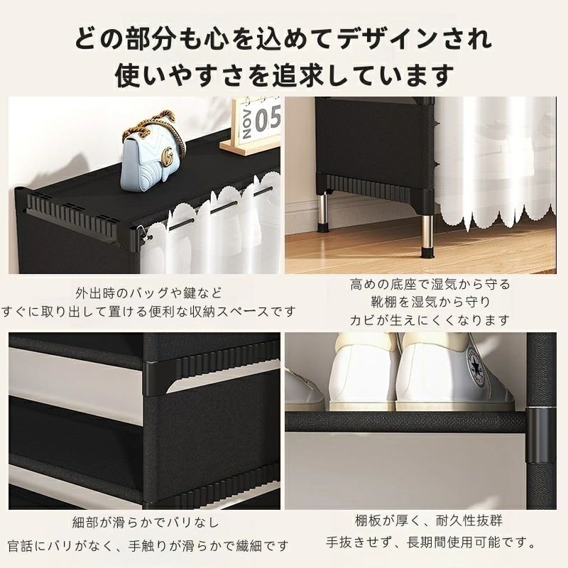 靴箱シューズラック 幅60 80 cm 4段 5段 6段 7段 8段 ホワイト-60cm ホワイト-80cm グレー-60cm グレー-80cm ブラック-60cm ブラック-80cm