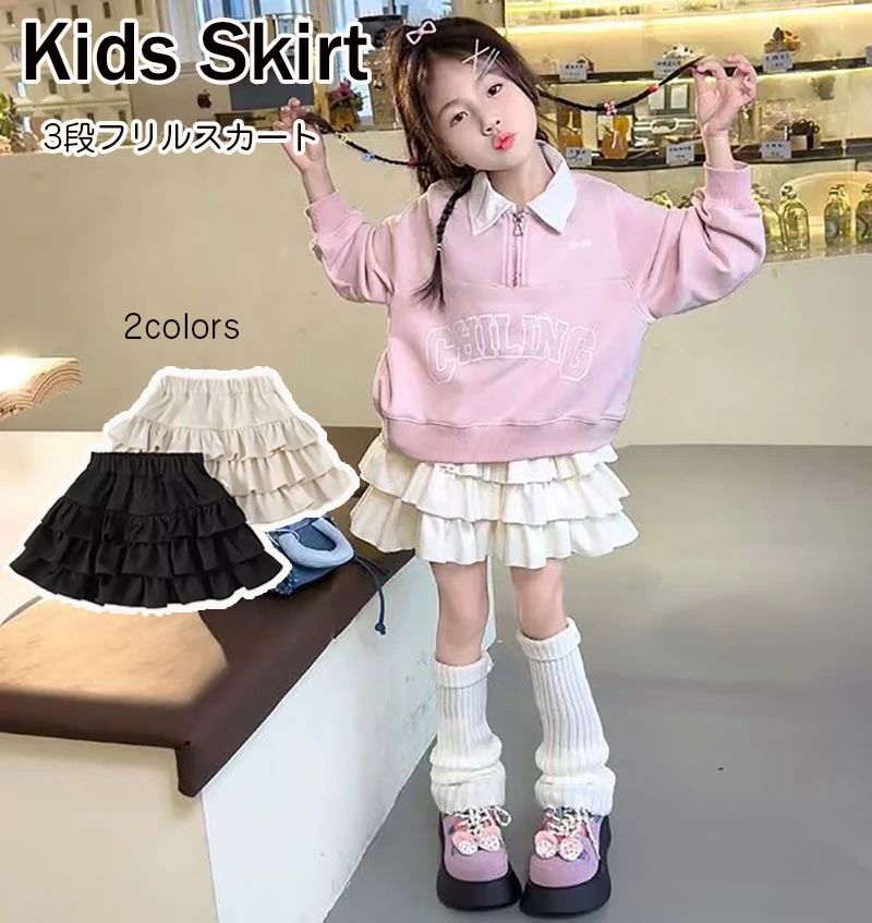 3段フリル フリルスカート風ショートパ キッズ ボトムス スカート 早い者勝ち ブラック ベージュ 110cm 120cm 130cm 140cm 150cm 160cm