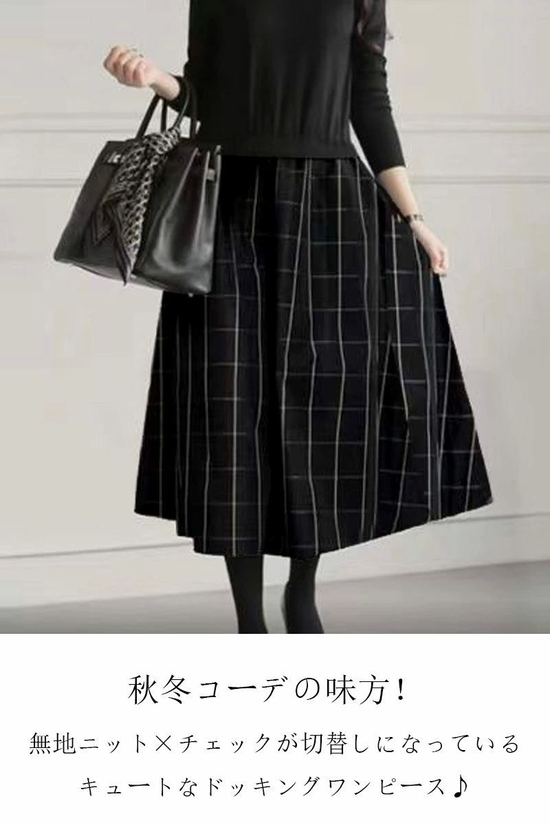 可愛い 50代 40代 大きいサイズ ワンピース 新登場! 無地・黒 チェック・グレー チェック・黒 無地・杏色 杏色 新柄:ボーダー・黒 新柄:ボーダー・ベージュ