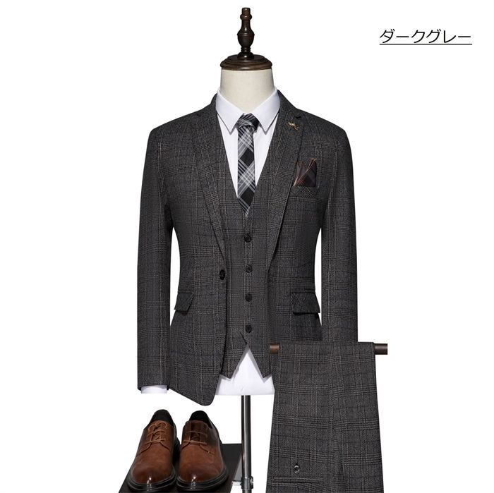 チェック柄 スリーピース メンズ 紳士 メンズファッション 豊富 コーヒー色 ネイビー ダークグレー M L XL 2XL 3XL 4XL 5XL