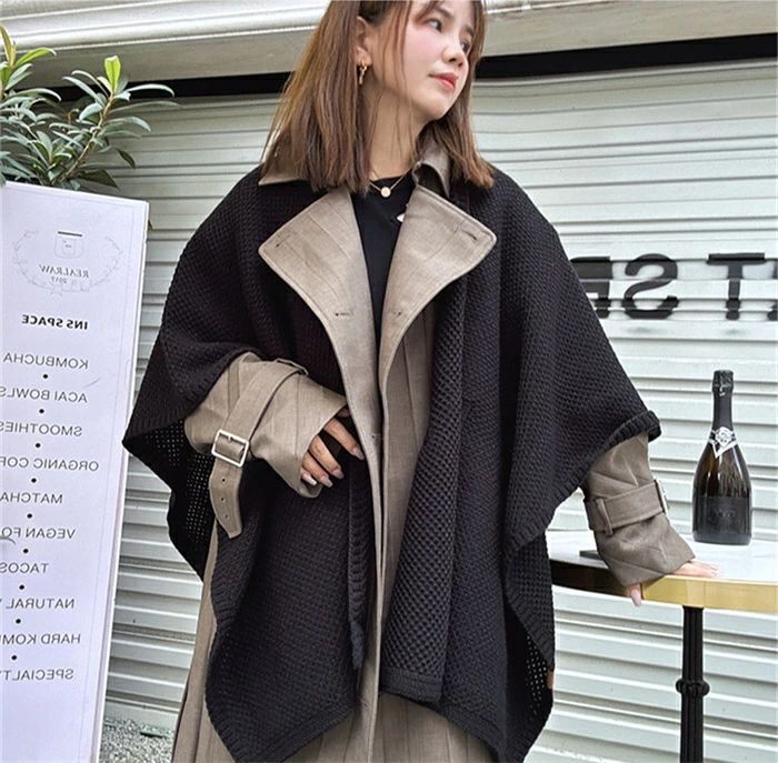 ポンチョコート コート マント ケープ コート ジャケット 豊富な品揃え ブラック グレー キャラメル ブルー グリーン オフホワイト キャメル