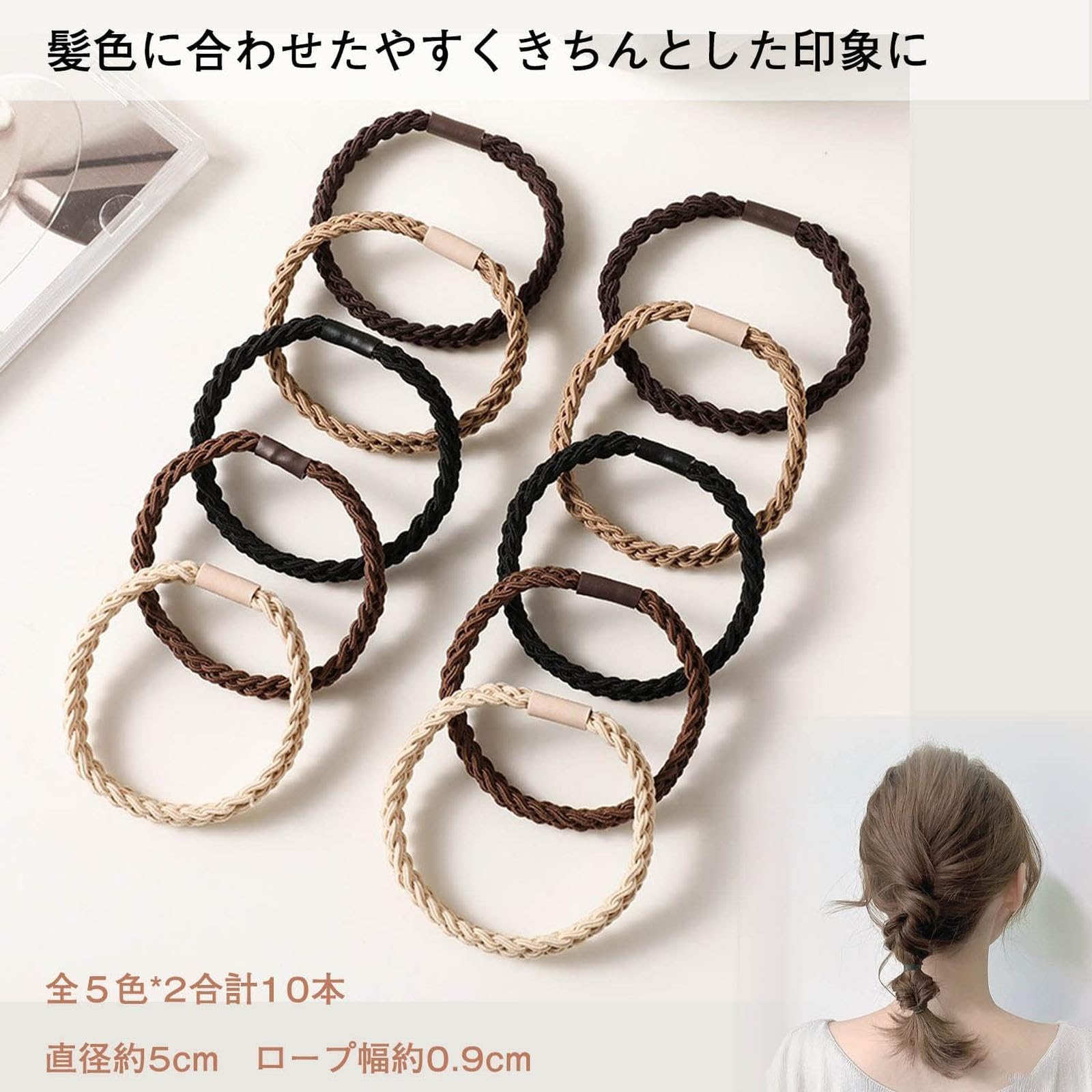 ヘアゴム 髪ゴム 編みロープ風5色10個入 メンズ レディース おしゃれ大人ヘアゴム ヘアアクセサリー シンプル 髪馴染み良い 無地 アースカラー ヘアリング 髪留めゴム ヘアアレンジ エレガント