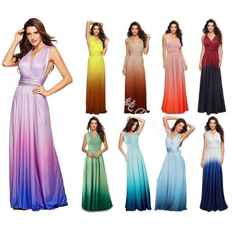 ダンス 衣装 パーティードレス ロング丈 マキシ丈 ドレス セクシー バックレス 美背 ロング ワンピース グラデーション 欧米風 紐 リボン 結ぶ ブライズメイド服 パーティー イブ 結婚式