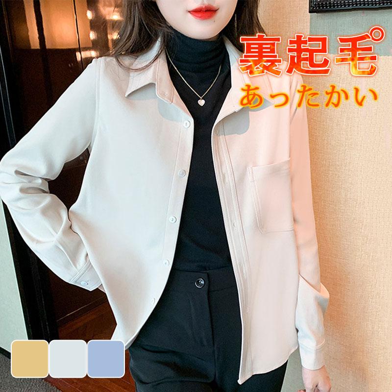 シャツ レディース 裏ボア ブラウス 裏起毛 トップス 羽織り 前開き 暖かい 防寒 もこもこ カジュアル シンプル 通勤 秋冬 アウター