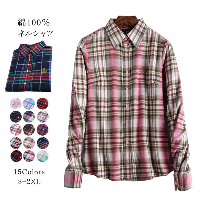 ネルシャツ チェックシャツ レディース フランネルシャツ ブラウス 長袖 コットン トップス 送料無料
