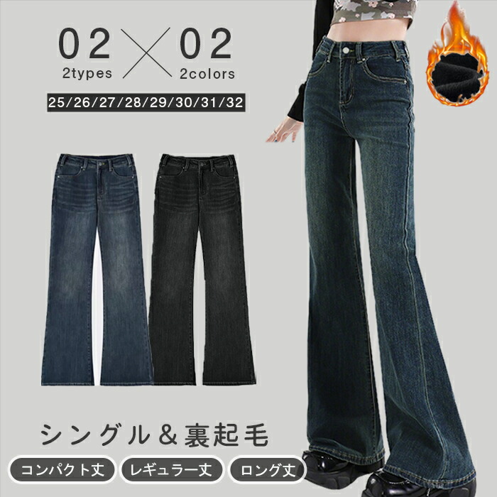 パンツ レディース フレアデニム シングル 裏起毛 デニムパンツ フレア デニム ストレッチ セミフレア 薄手 厚手 防風 フレアデニムパンツ 低身長 コンパクト丈 レギュラー丈 ジー 高身長