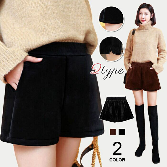 ショートパンツ 冬 ベロアパンツ レディース ベロア ワイドパンツ ハーフパンツ パンツ 秋冬 ゆったり 半ズボン ハイウエスト ウエストゴム 美脚 ベロア生地