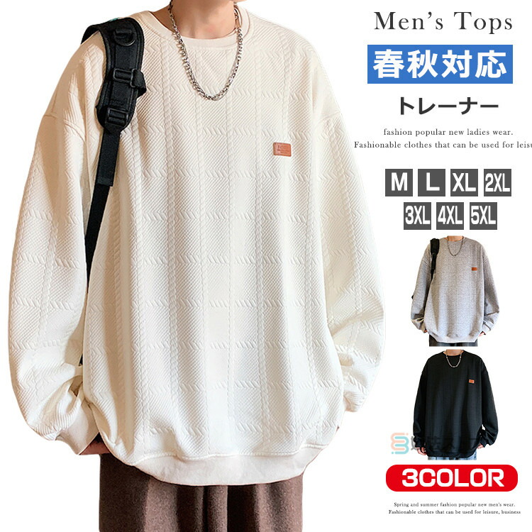トレーナー メンズ スウェット ビッグシルエット ロゴトレーナー 春 秋 ビッグシルエットトレーナー スウェットトレーナー 大きいサイズ おしゃれ プルオーバー 凹凸感 ビッグトレーナー 長 トップス